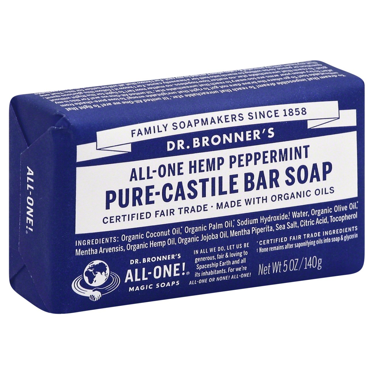 Dr. Bronner's Magic Soaps AllOne Hemp Peppermint PureCastile Soap Dr Bronner S Bar Soap Ingredients No synthetic preservatives, detergents, or foaming agents: warm, comforting and slightly sweet & like marzipan or amaretto! Organic coconut oil*, organic palm oil*, sodium. use on your face, body, or hair! scented with organic peppermint oil to cool skin, clear sinuses and sharpen mind. scented with organic peppermint oil to cool skin, clear sinuses and sharpen. Dr Bronner S Bar Soap Ingredients.