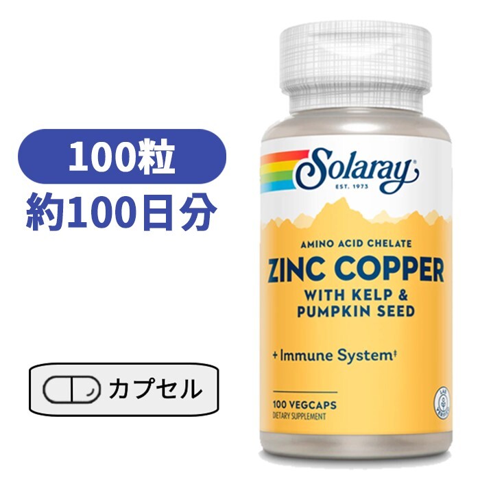 【楽天市場】ソラレー 亜鉛 銅 100ベジカプセル 【Solaray Zinc Copper with Kelp & Pumpkin Seed