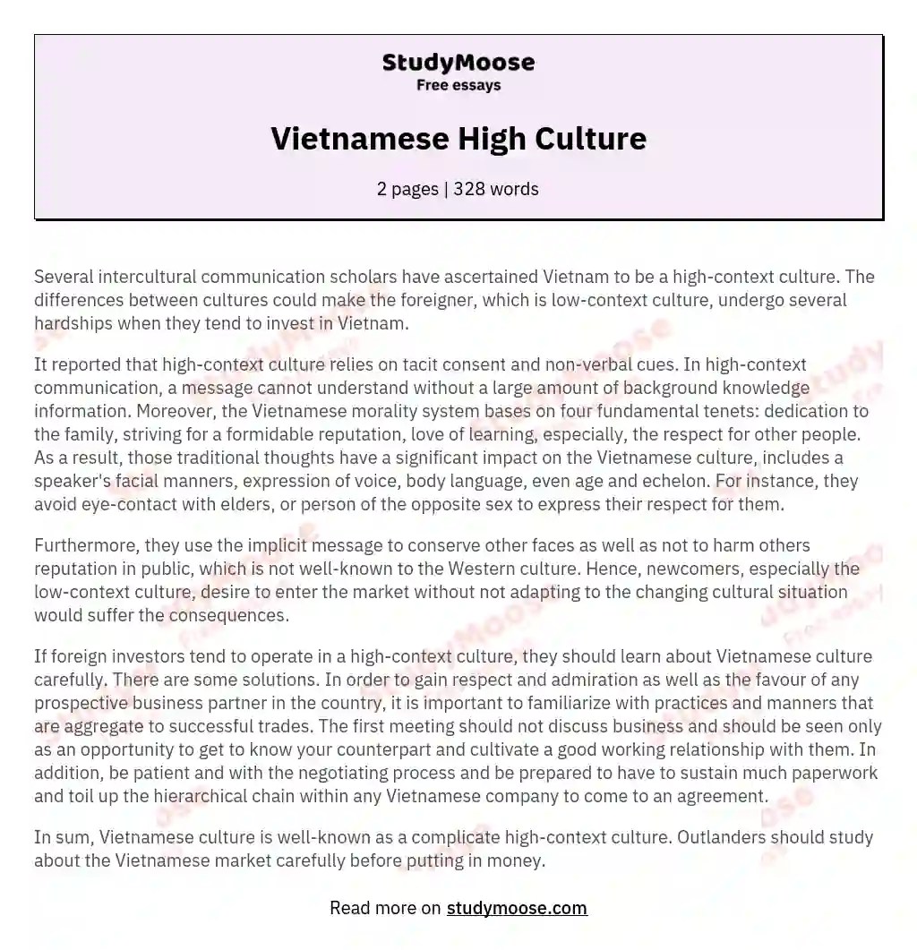 Vietnamese High Culture Free Essay Example