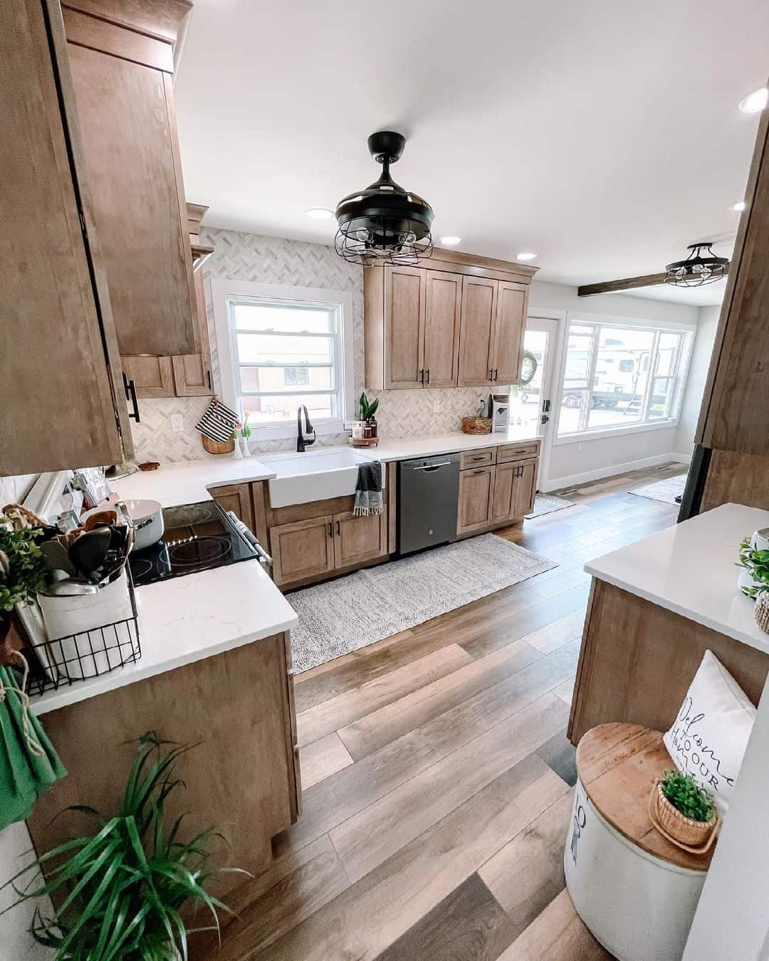 Herringbone Backsplash in Wood Kitchen Soul & Lane