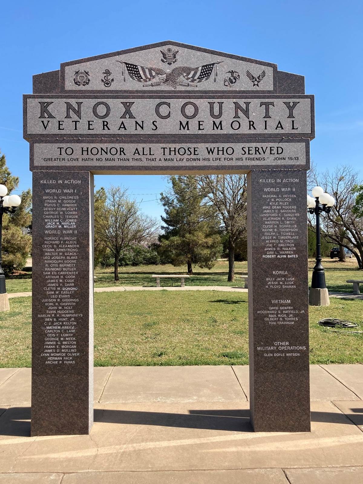 Knox County Veterans Memorial Texas County Progress