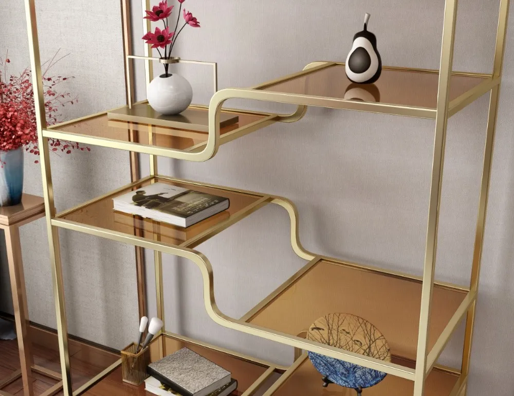 Modern Luxury Rose Gold Glass Book Shelf Stainless Steel Bookcase Buy