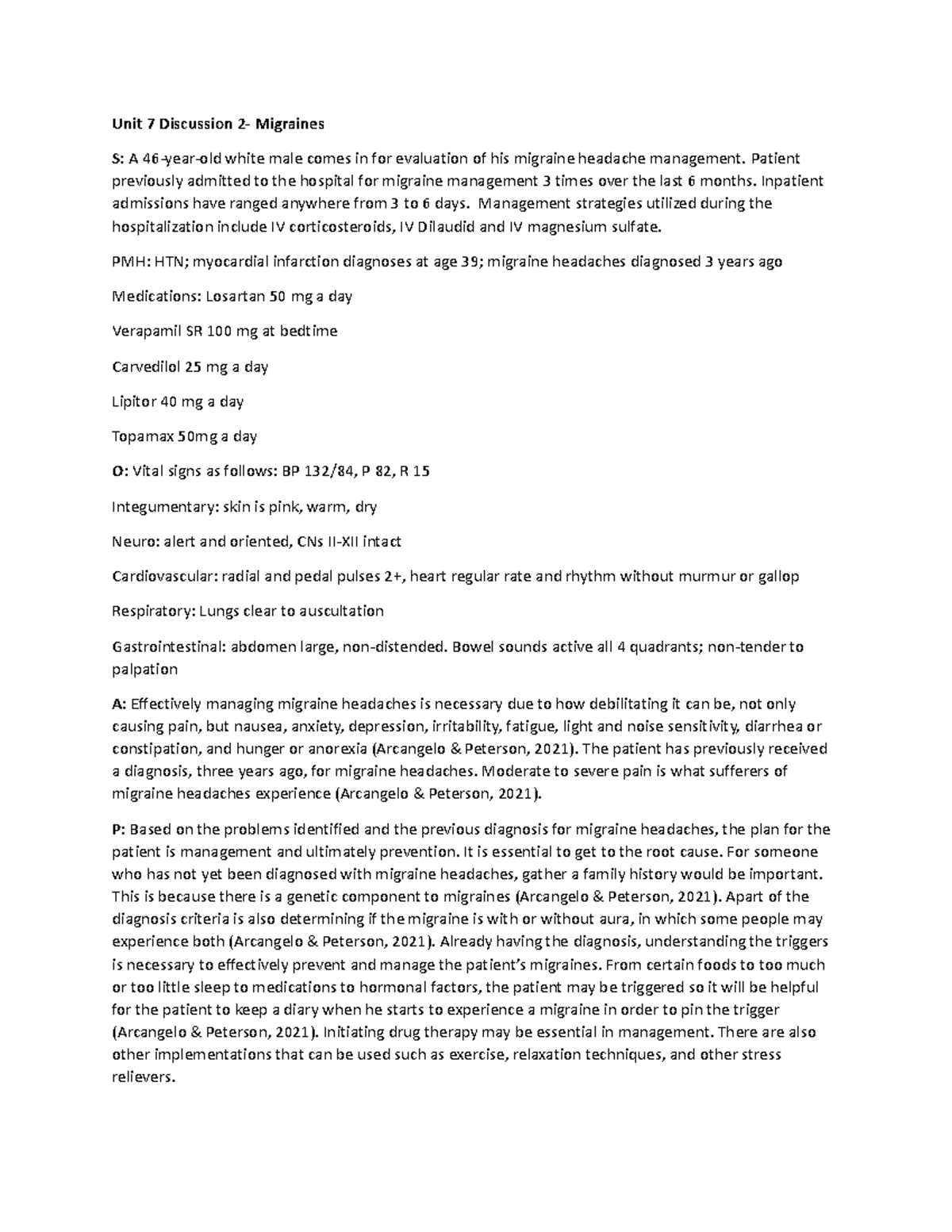 Unit 7 Discussion 2 Migraines NU636 Unit 7 Discussion 2 Migraines S