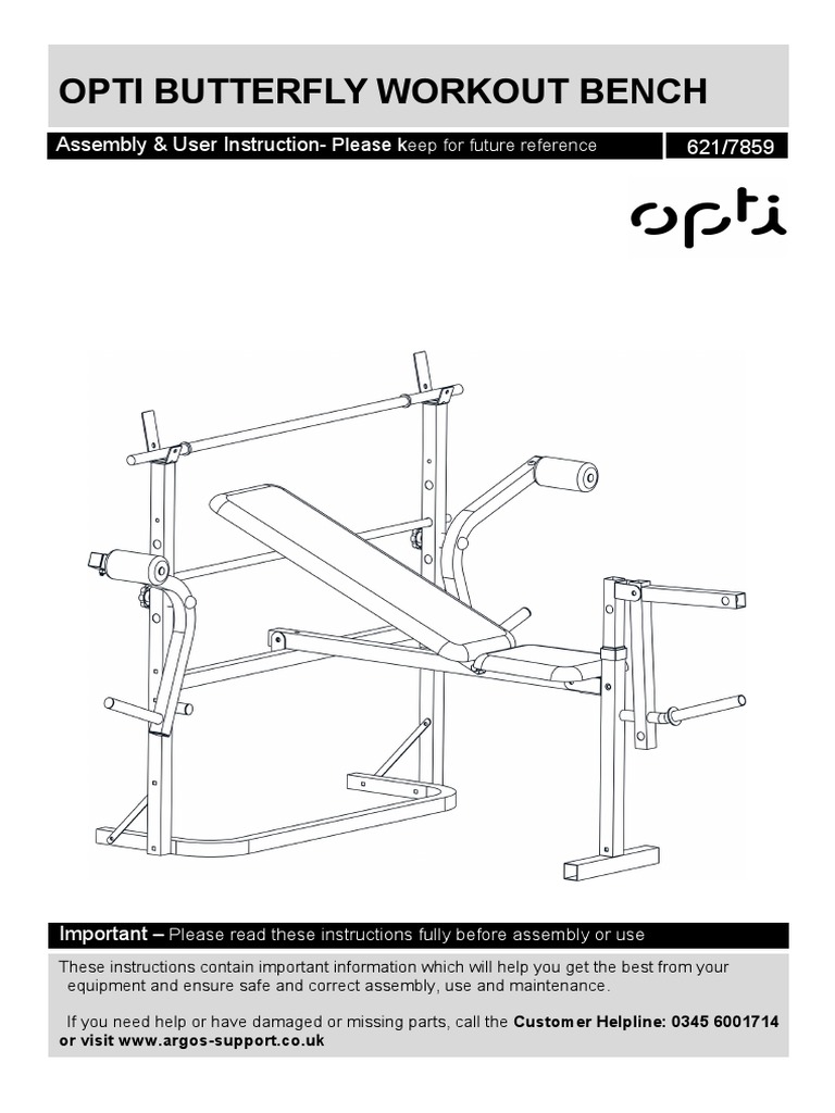 Opti Butterfly Workout Bench Assembly & User Instruction 621/7859 Opti Butterfly Workout Bench Instructions Assembly & user instructions | brand: opti 621/7859 assembly & user instructions (27 pages) butterfly workout bench brand: these instructions contain important information which will help you get the best from your equipment and ensure. i recently got my hands on one of argos's new pro fitness folding workout benches for the ridiculously low price of £159.99.. Opti Butterfly Workout Bench Instructions.