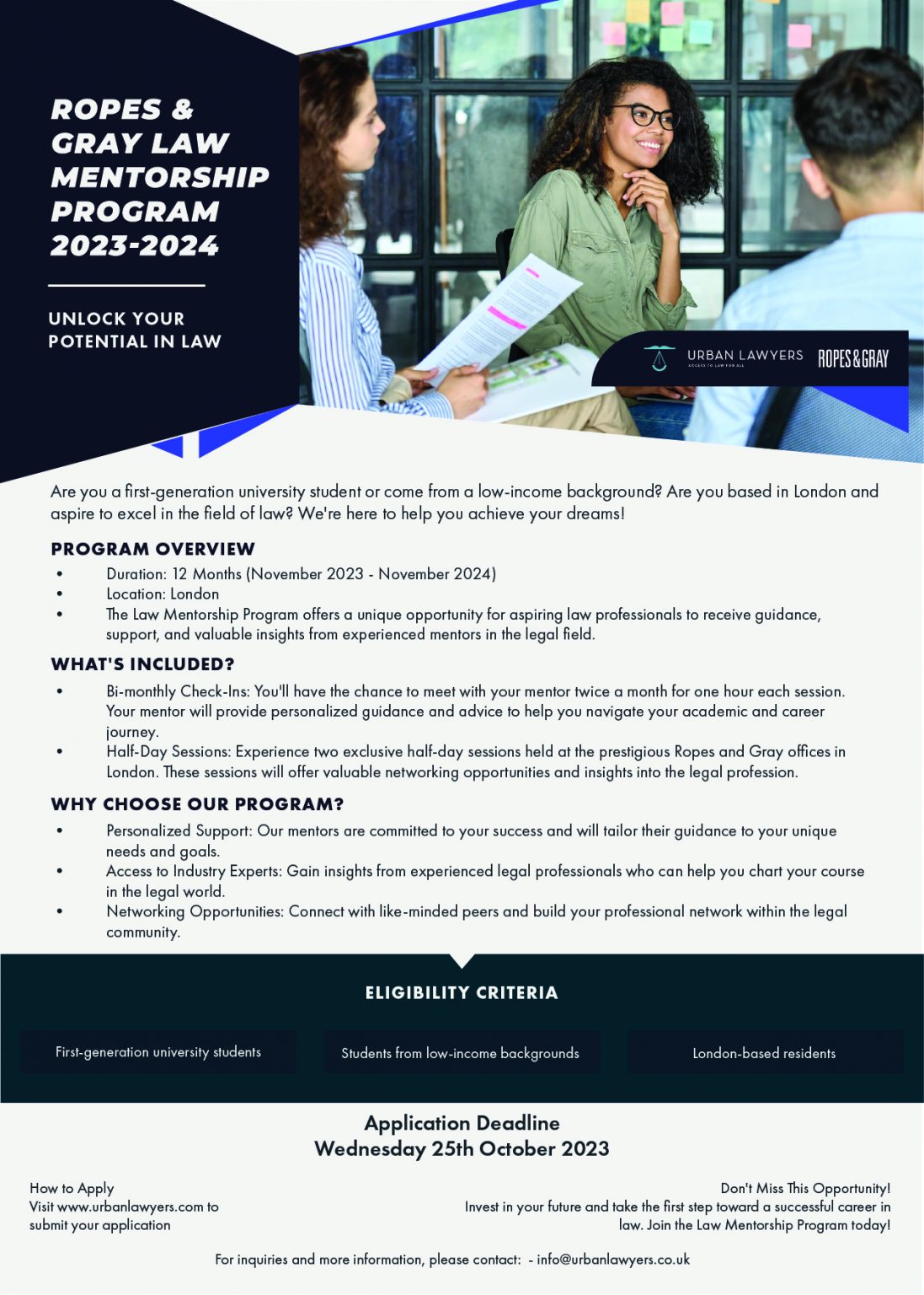 Ropes & Gray Law Mentorship Program Application Urban Lawyers