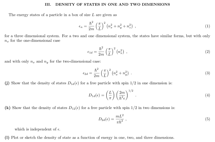 Solved III. DENSITY OF STATES IN ONE AND TWO DIMENSIONS =*