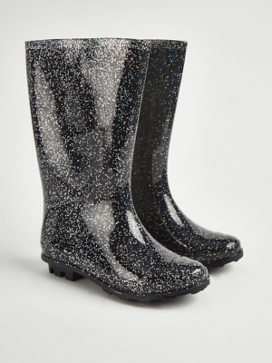Black Glitter Wellington Boots Kids at ASDA