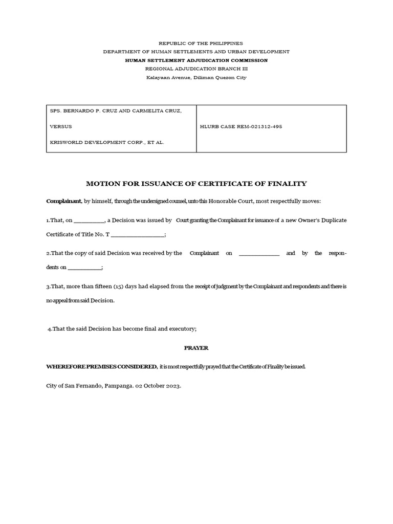 Motion For Certificate PDF