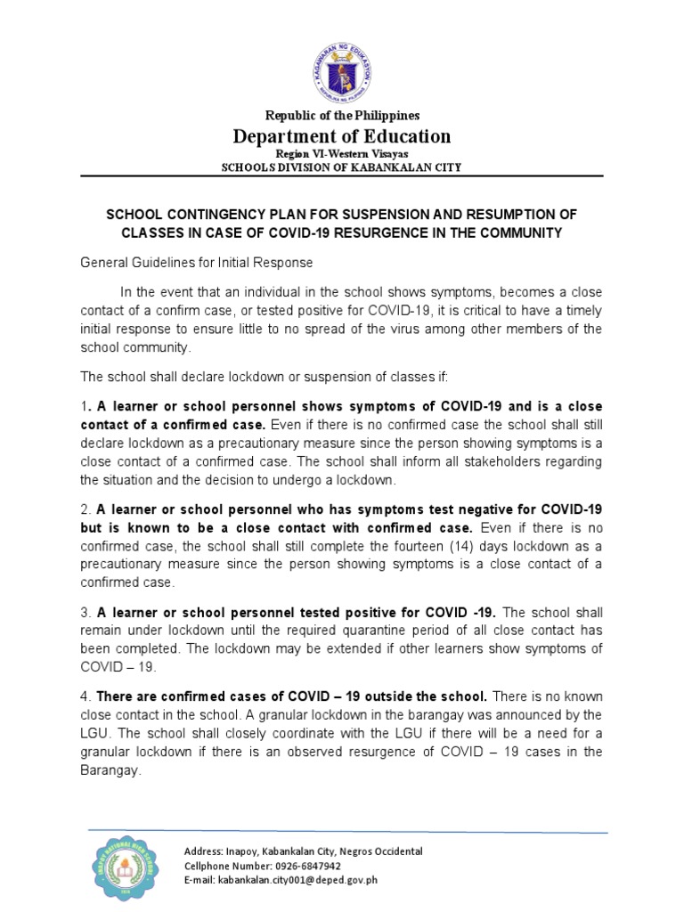 Contingency Plan For Suspension Resumption of Classes PDF Learning