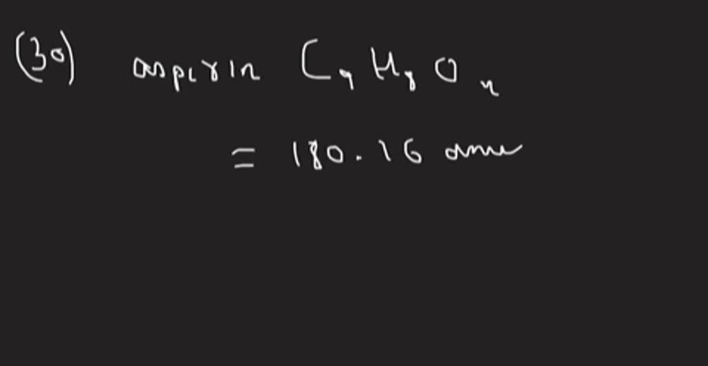 SOLVED How many moles of aspirin, C9H8O4, are in a bottle containing Moles Aspirin Formula the molecular mass of aspirin is (9 × 12) + (8 × 1) + (16 × 4) = 180 g. Molar mass of c9h8o4 = 180.15742 g/mol. Convert grams aspirin to moles. the chemical name of the active ingredient in aspirin is acetylsalicylic acid. molar mass of aspirin = 180.16 g. In order to dissolve aspirin completely. Moles Aspirin Formula.