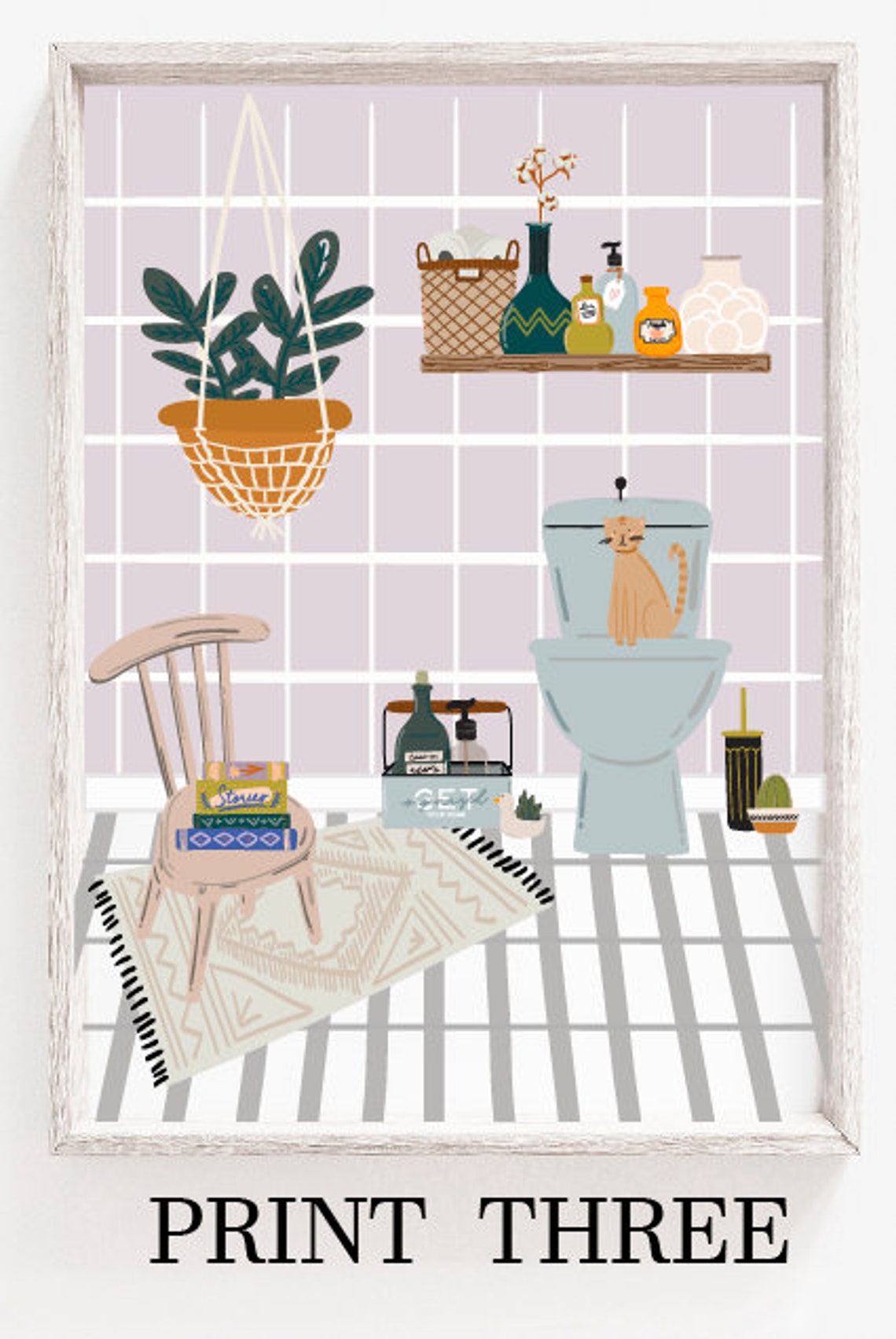 Set of 3 Boho Bathroom Wall Art Bathroom Scene Prints Set of Etsy UK
