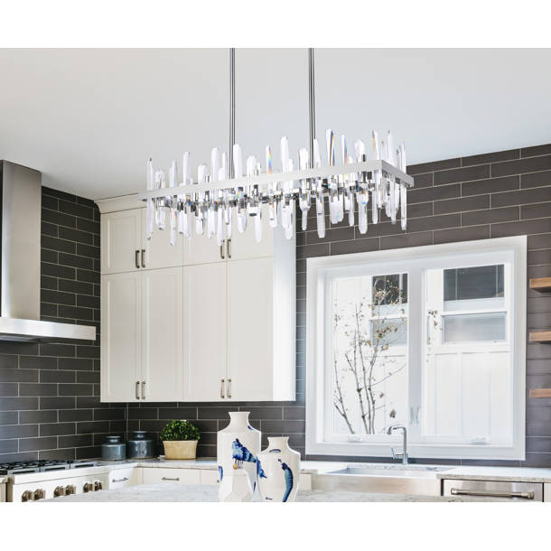 Krisa 35 1/2" Wide Crystal LED Kitchen Island Light Pendant 78T09 Led Lights Kitchen Island Kitchen island lighting is more than just a functional element. Illuminate your kitchen with stunning island lighting. The kitchen island pendant is ideal for kitchen islands, dining rooms, and provides focused task lighting for cooking and dining, enhancing. This kitchen lighting pendant over the island features 3 black geometric frames and 5 golden lamp bases. As a centrepiece in many.. Led Lights Kitchen Island.