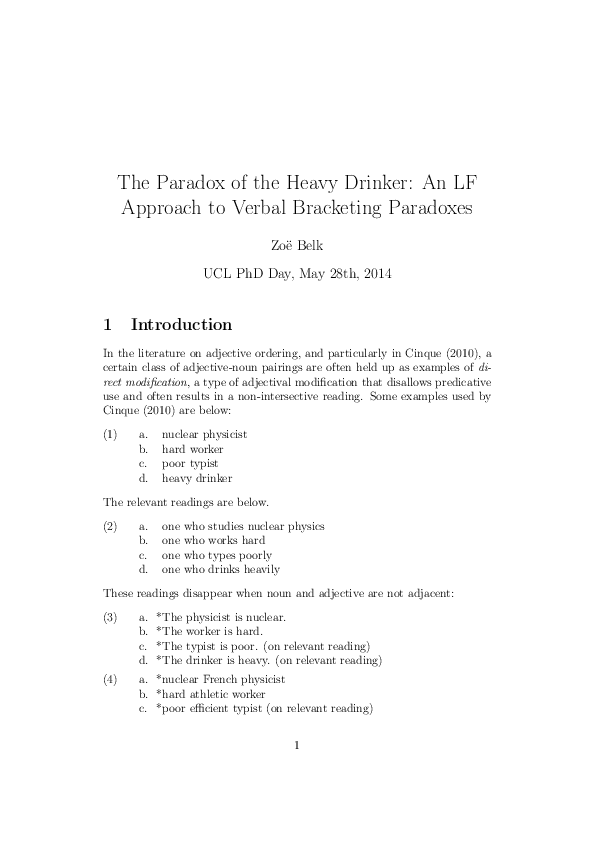 (PDF) The Paradox of the Heavy Drinker An LF Approach to Verbal