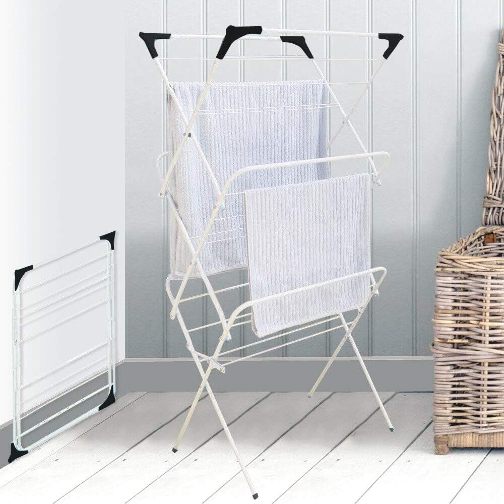 Q&H 3 Tier Concertina Clothes Airer Heavy Duty Space Saving Towel Concertina Clothes Airer Dryer A convenient way to hang your clothes to dry, can be used indoors or outdoors, the airer folds flat when not in use. This clothes drying rack can handle delicate laundry with care, reducing the risk of. The best selling 3 tier plus indoor airer offers 21 metres of hanging space made up of hanging rungs plus 4 unique flip. Concertina Clothes Airer Dryer.