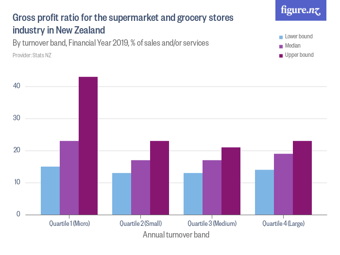 Gross profit ratio for the supermarket and grocery stores industry in