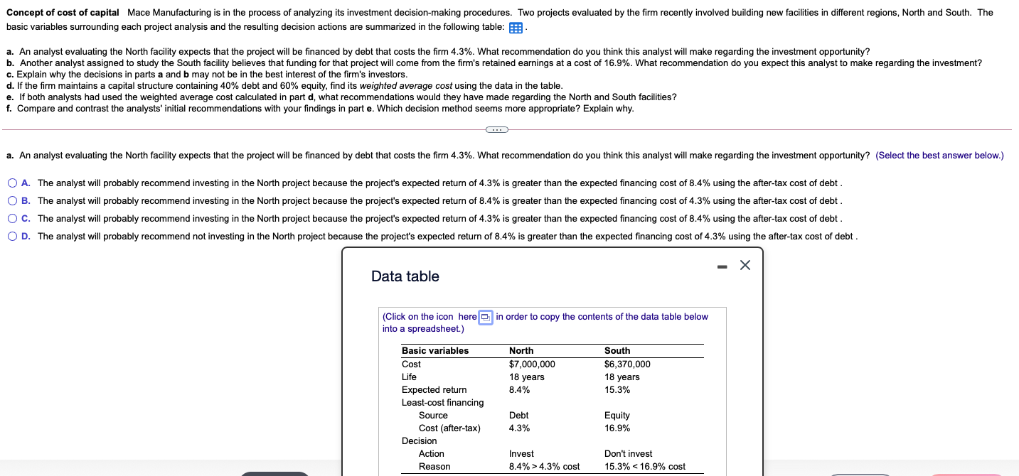 Solved Concept of cost of capital Mace Manufacturing is in