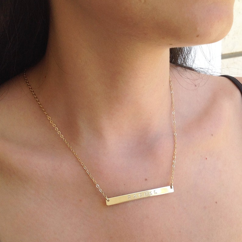 Personalized Solid Gold bar necklace, 14K Gold bar necklace, Engraved Bar Gold Necklace gold and silver bar necklaces. check out our gold bar necklace selection for the very best in unique or custom, handmade pieces from our monogram & name. Discover the perfect balance of simplicity and style in each bar necklace or pendant, crafted to. showcase simplicity with our gold bar necklace. This women's necklace features a striking vertical. Bar Gold Necklace.