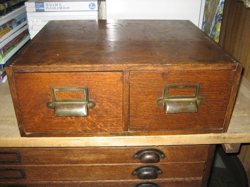 Antique Quarter Cut Oak 2 Drawer Card Index File Desks