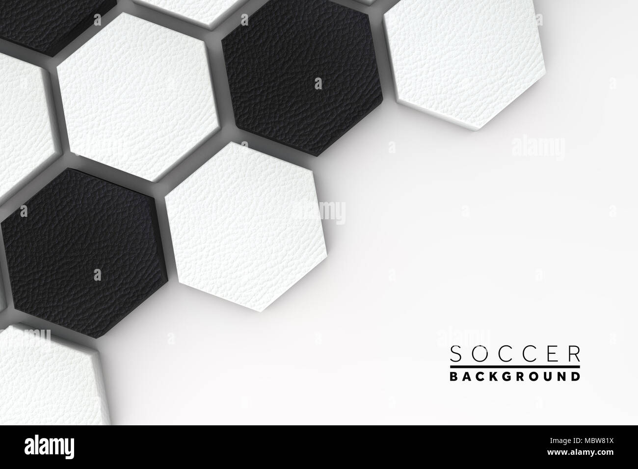 Soccer ball hexagon background. black and white football pattern. 3d