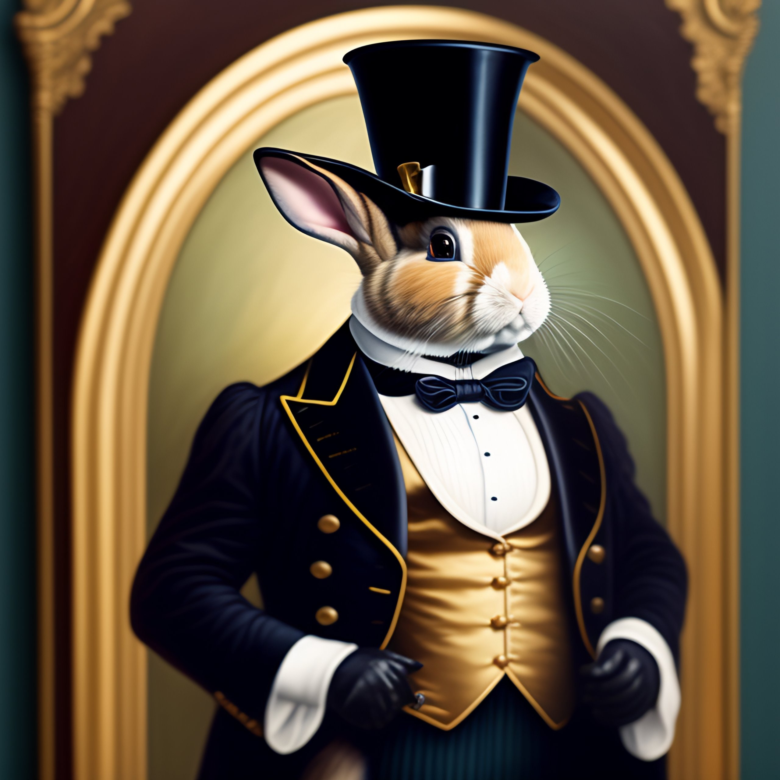 Lexica Oil painting of a rabbit wearing a top hat, a monocle, an