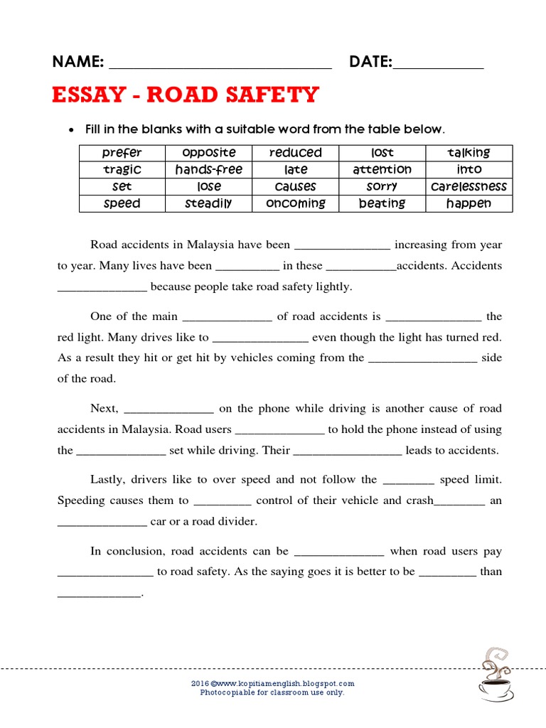 Essay Road Safety NAME ___________________________ DATE___________