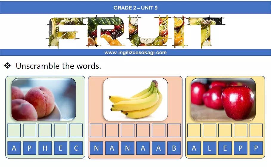2. SINIF 9. ÜNİTE Fruit (Unscramble) İngilizce Sokağı
