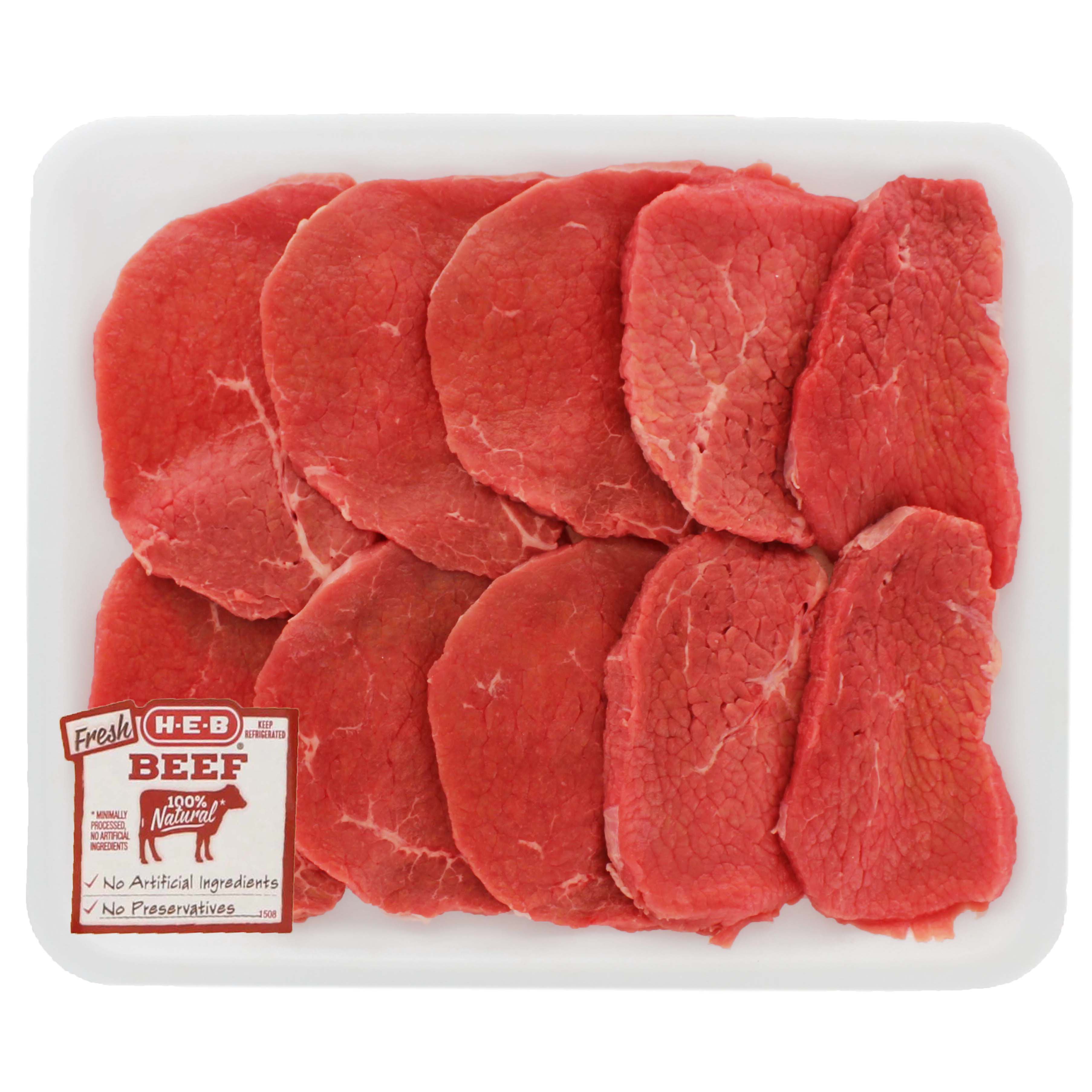 HEB Beef Eye of Round Steak Thin Value Pack, USDA Select, 910 steaks