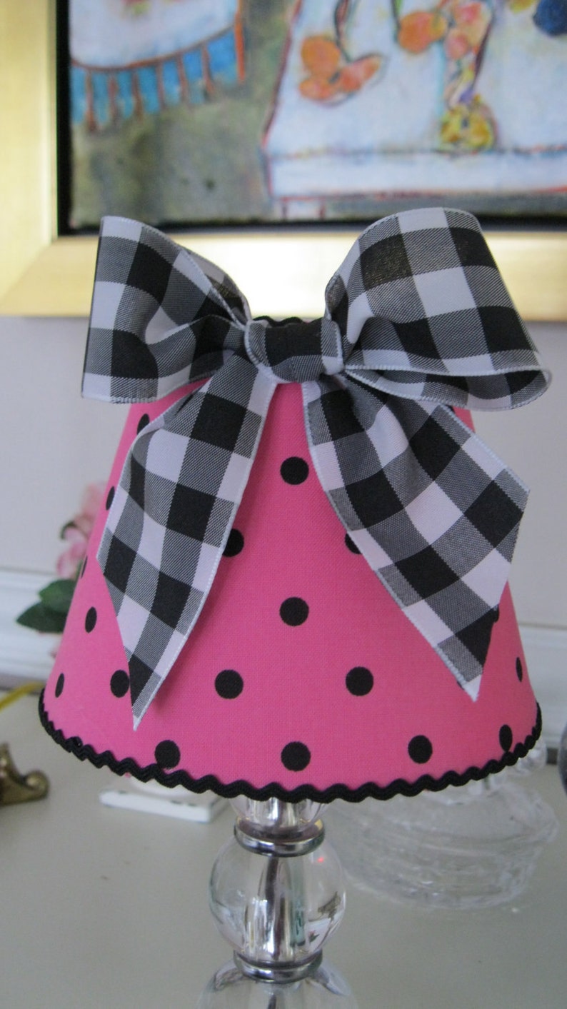 Chandelier Shade in Hot Pink Dot Fabric and Gingham Check Bow Etsy