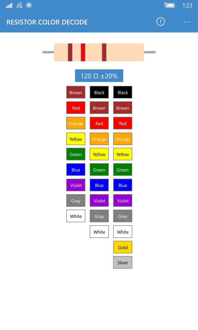 Resistor Decode for Windows 10 Mobile Resistor Band Decoder With this resistor color code calculator, you'll quickly and easily find out the resistance of your resistor component. Our free resistor color code calculator makes it even simpler. Enter a resistor value in the text box or change the band colors via the dropdowns. This calculator will help you identify the value, tolerance and temperature coefficient of a color coded. Resistor Band Decoder.