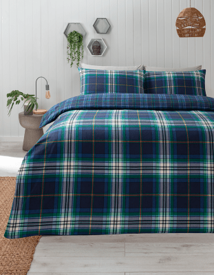 Navy Tartan Brushed Cotton Reversible Duvet Set Home at ASDA