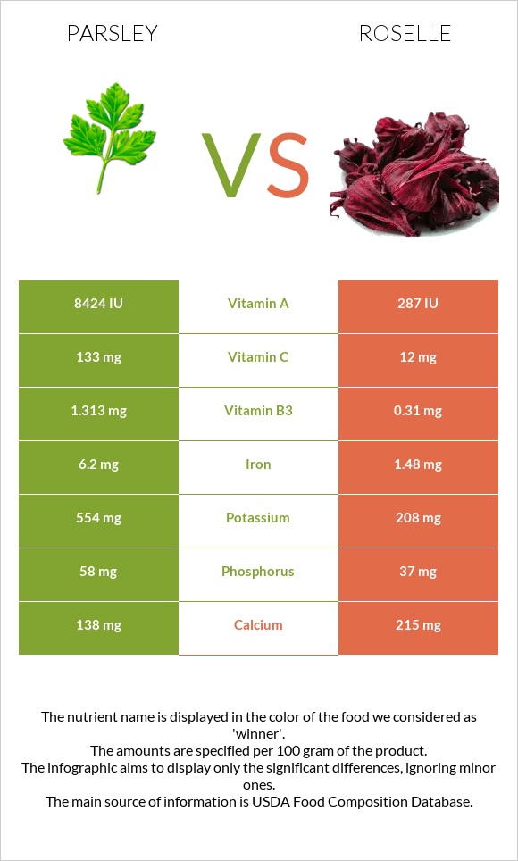 Parsley vs. Roselle (Hibiscus sabdariffa) — InDepth Nutrition Comparison