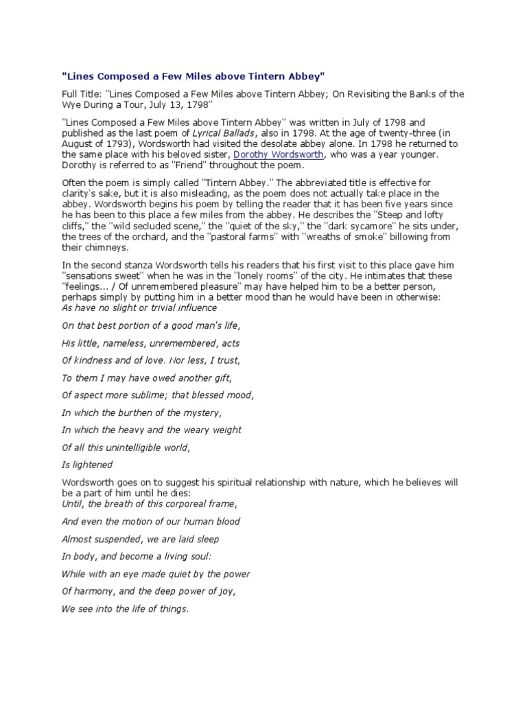 "Lines Composed A Few Miles Above Tintern Abbey" Dorothy Wordsworth Lines Composed A Few Miles Above Tintern Abbey Answer Key Complete explanation for the poem by william wordsworth. by william wordsworth. explore insightful questions and answers on lines composed a few miles above tintern abbey at enotes. lines composed a few miles above tintern abbey, by william wordsworth, is sometimes considered the. lines composed a few miles above tintern abbey was written in july of 1798. Lines Composed A Few Miles Above Tintern Abbey Answer Key.
