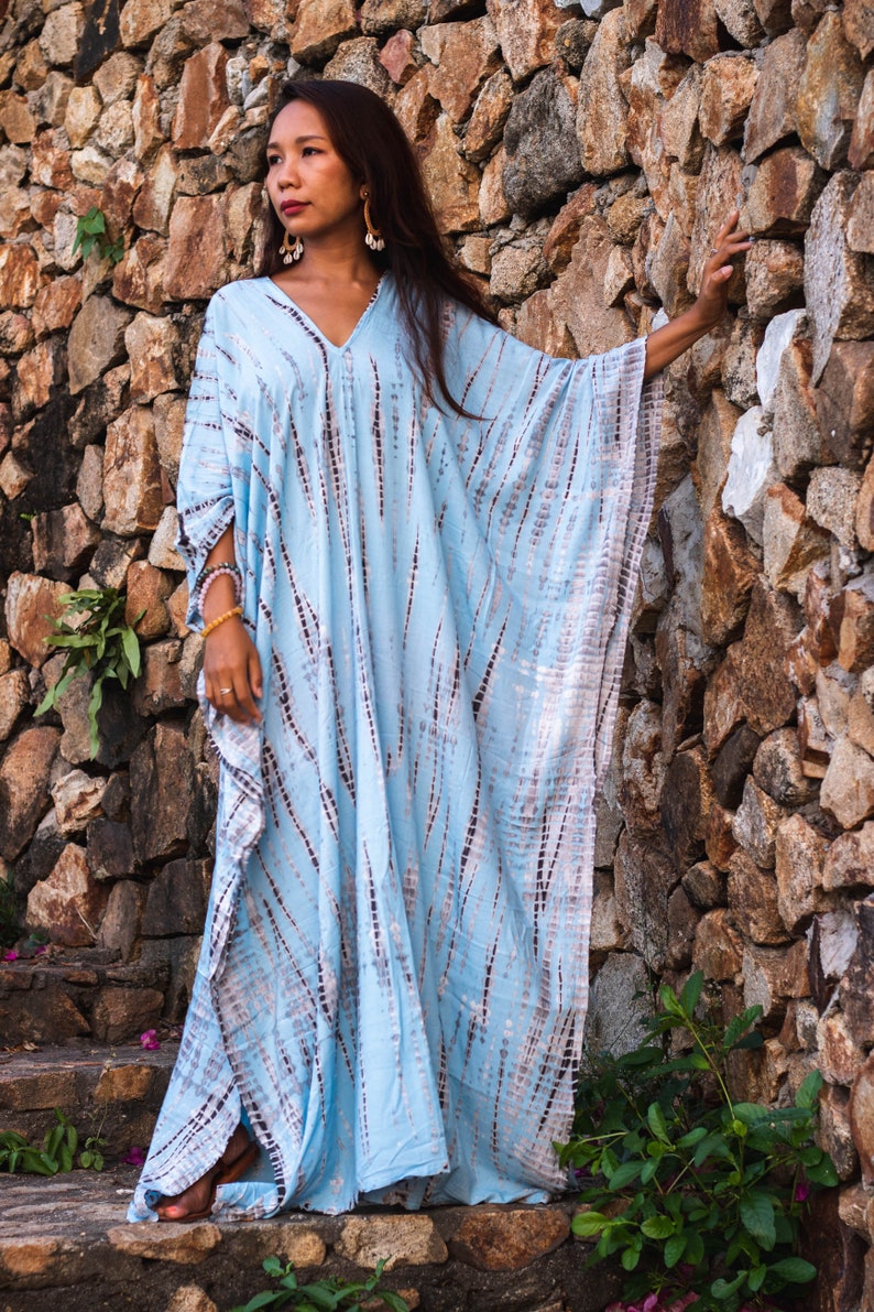 Kaftan Maxi Dress in Light Blue / Boho Dress / Fits Plus Size Etsy