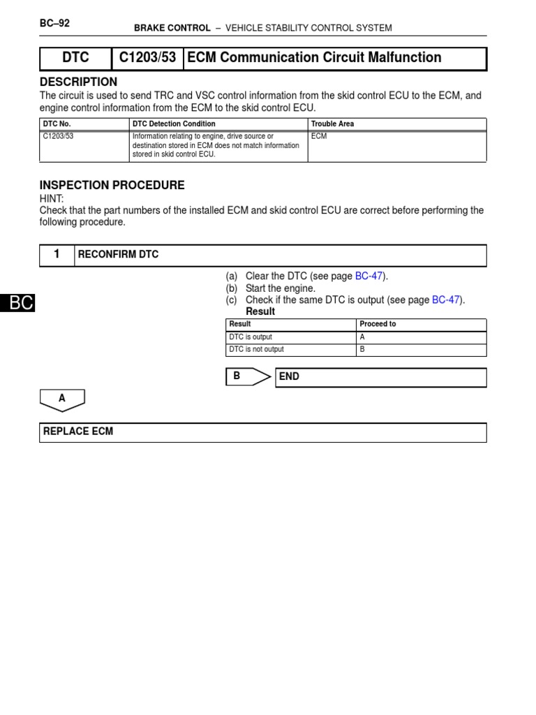 Replace Skid Control Ecu Dtc C Ecm Communication Circuit Malfunction C1203 Ecm Communication Circuit The engine control module (ecm). Test the ecm and related. Perform a thorough inspection of the ecm communication circuit, including wiring and connectors. Repair information for c1203 toyota code. The c1203 diagnostic trouble code (dtc) for a 2015 toyota rav4 indicates an ecm communication circuit malfunction. The c1203 code for toyota indicates an ecm communication circuit malfunction. The circuit is. C1203 Ecm Communication Circuit.