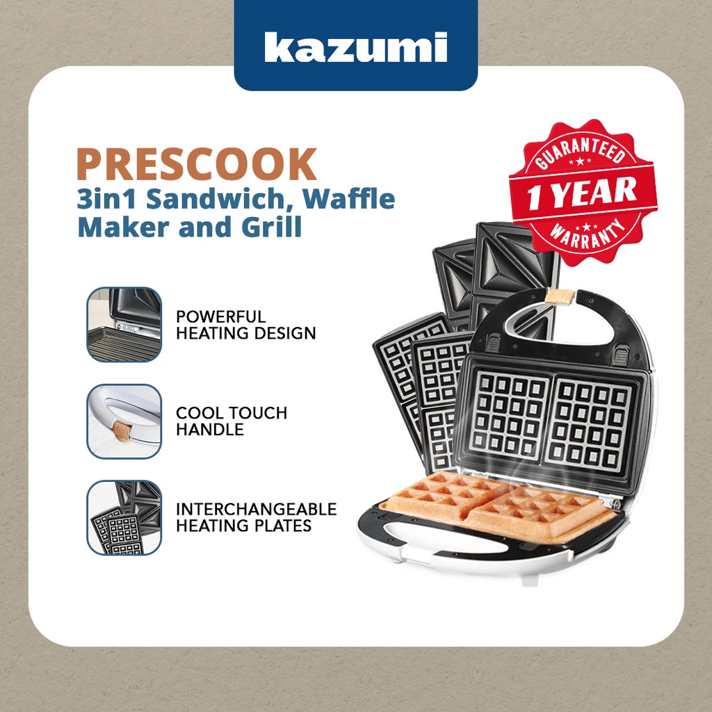Kazumi Prescook 3in1 Sandwich, Waffle Maker and Grill Breakfast Machine