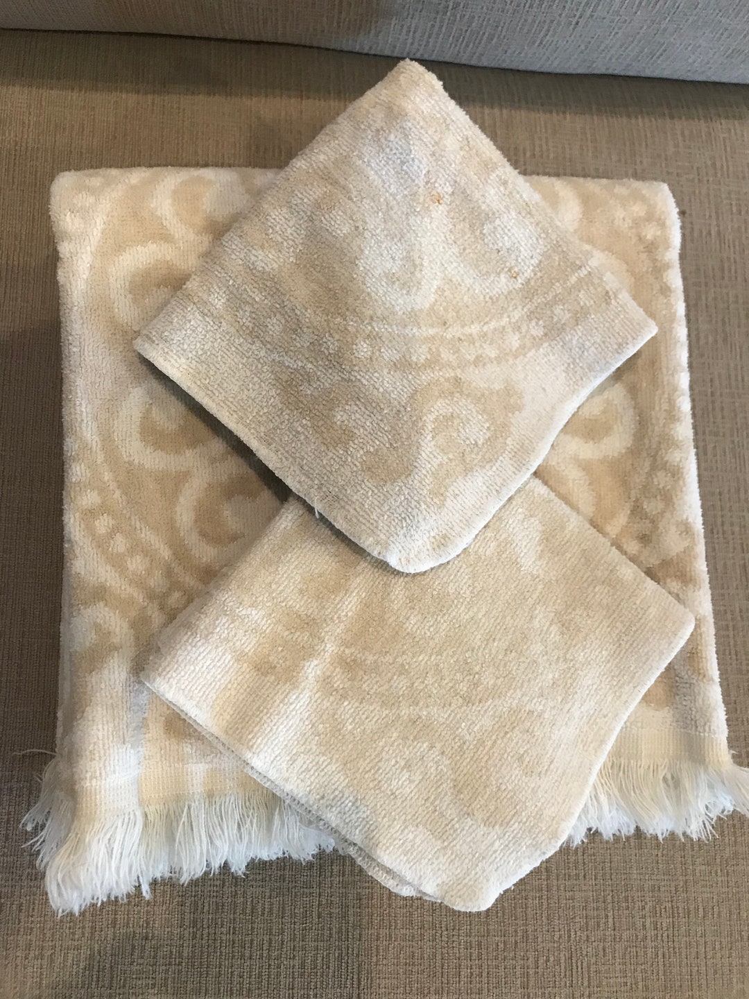 Vintage Bath Towels With Pair of Matching Wash Cloths. Light Etsy