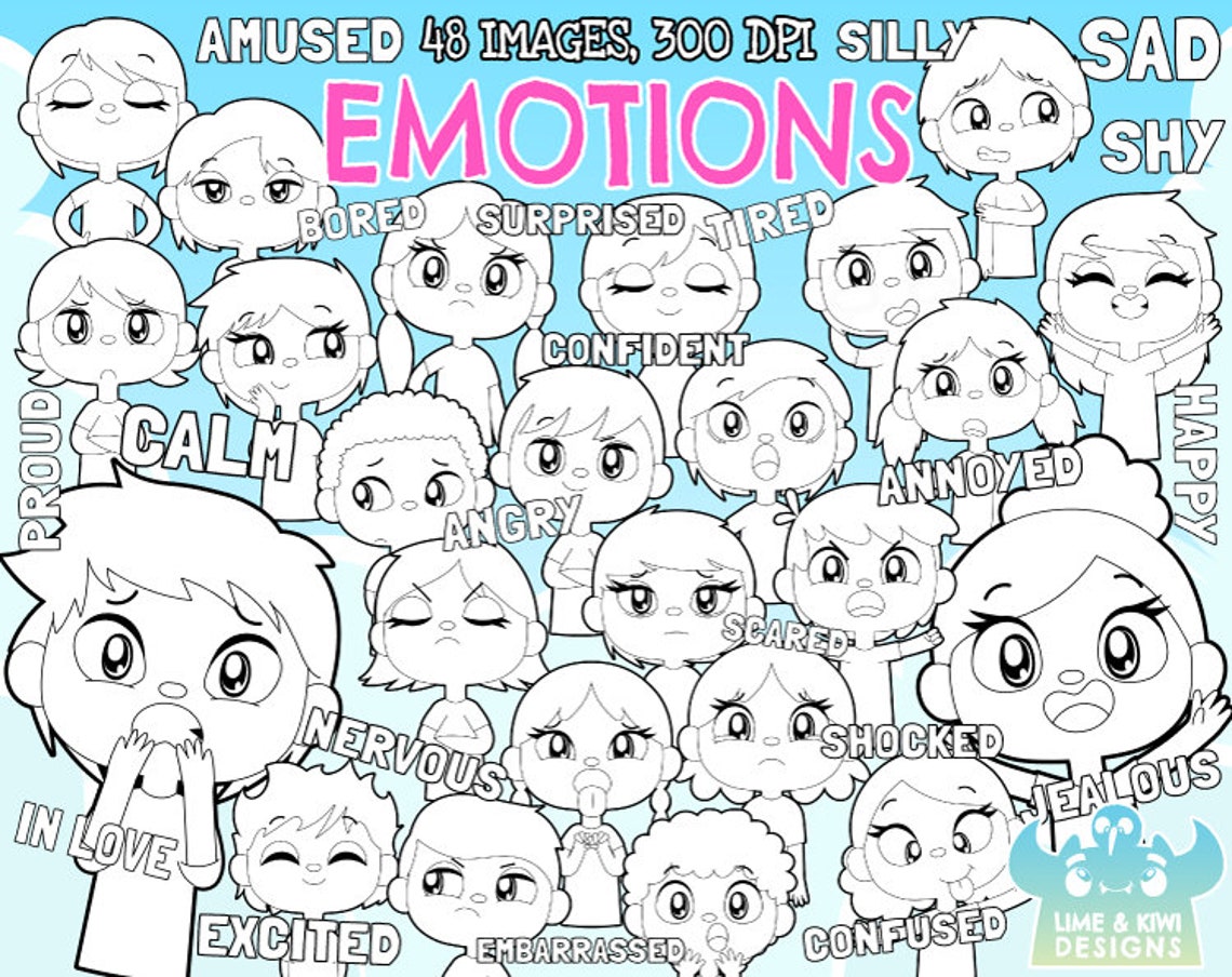Emotions Digital Stamps Instant Download Vector Art Facial Etsy UK