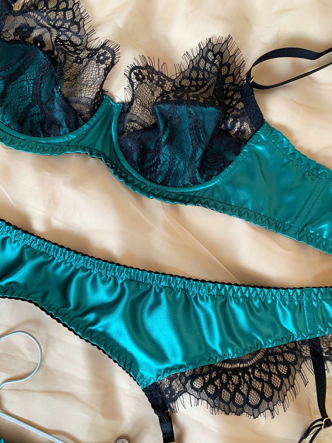 Green lingerie set Lace lingerie set Silk bra Emerald Etsy