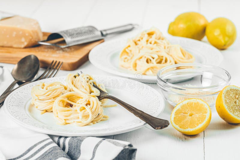 Spaghetti with Cream Cheese and Parmesan Stock Image Image of