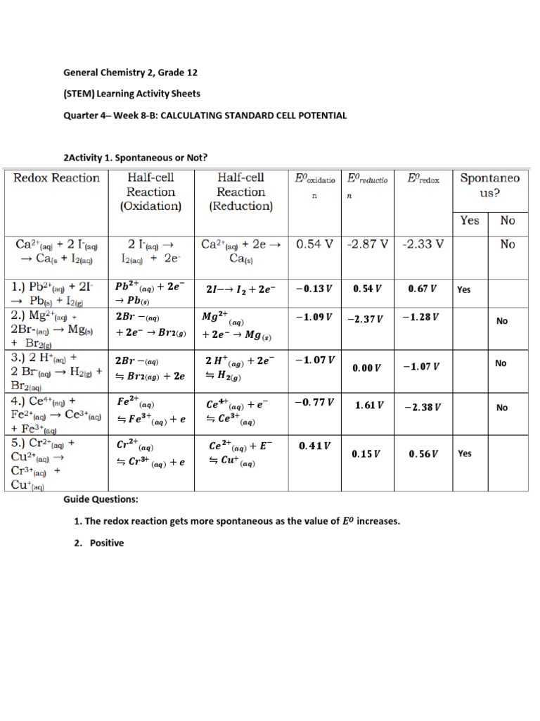 Gen Chem Week 8B Q2 PDF Redox Electrochemistry