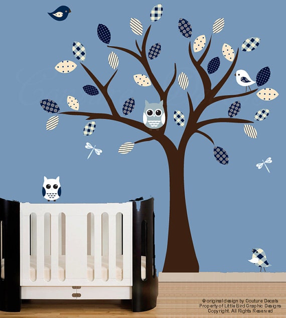 Childrens wall decal nursery wall tree with owl decals