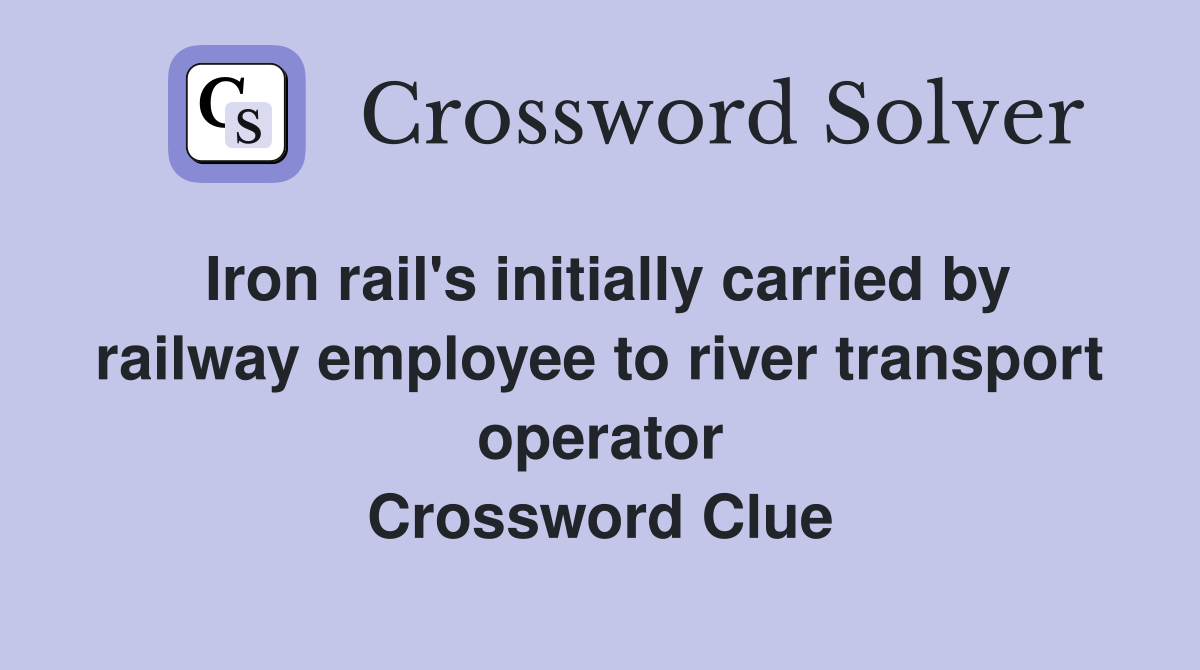 Iron rail's initially carried by railway employee to river transport Iron Bar Crossword Clue 3 Letters We have found 40 possible answers for this clue in our database. The crossword solver found 30 answers to iron bars, 3 letters crossword clue. The crossword solver finds answers to classic. There are related clues (shown below). The crossword solver found 30 answers to a long slender iron bar (3), 3 letters crossword clue. We have found 40 possible. Iron Bar Crossword Clue 3 Letters.