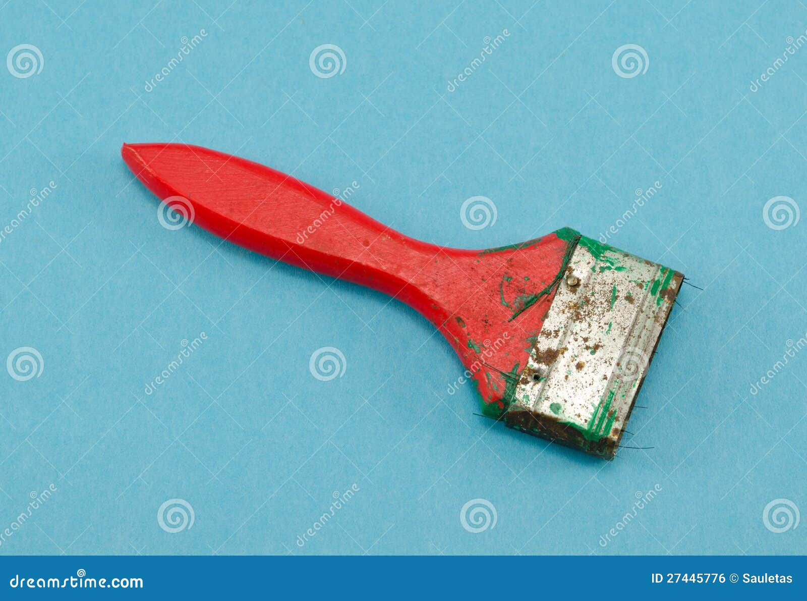 Red Broken Paint Brush Tool Handle on Blue Stock Photo Image of