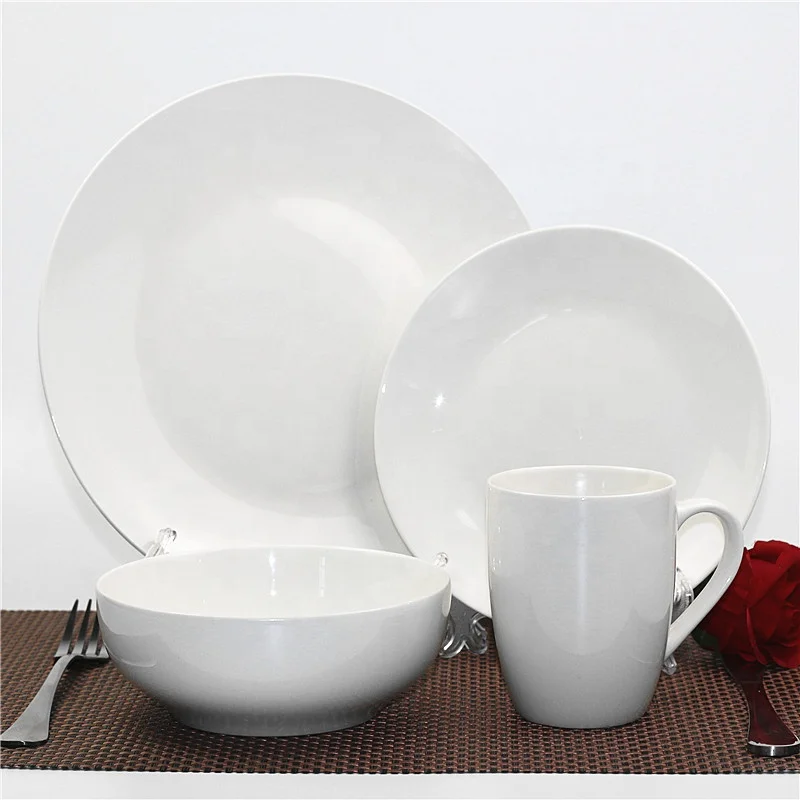 Wholesale White Porcelain Classic Kitchen Dinner Sets 16 Pcs Ceramic