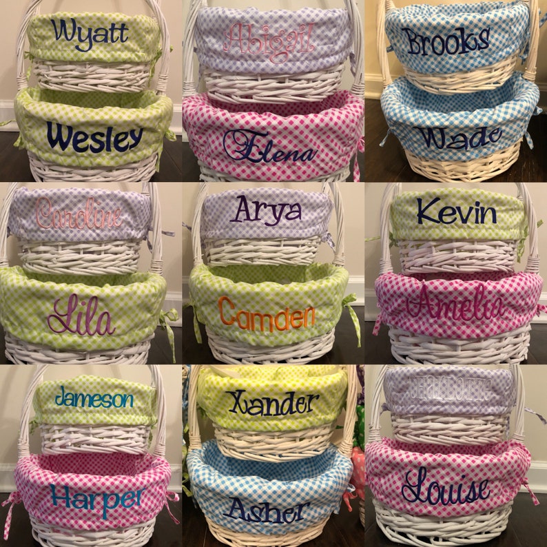 Embroidered Personalized Easter Basket GiftsForYouNow Personalized Easter Baskets Our baskets are carefully crafted and can be Fill it to the brim. create a truly special easter gift with custom easter baskets from callie. you can give so much more by choosing easter gift baskets and easter hampers filled with goodies that everyone can enjoy. Our bamboo plant pot makes. check out our personalised easter baskets. Personalized Easter Baskets.