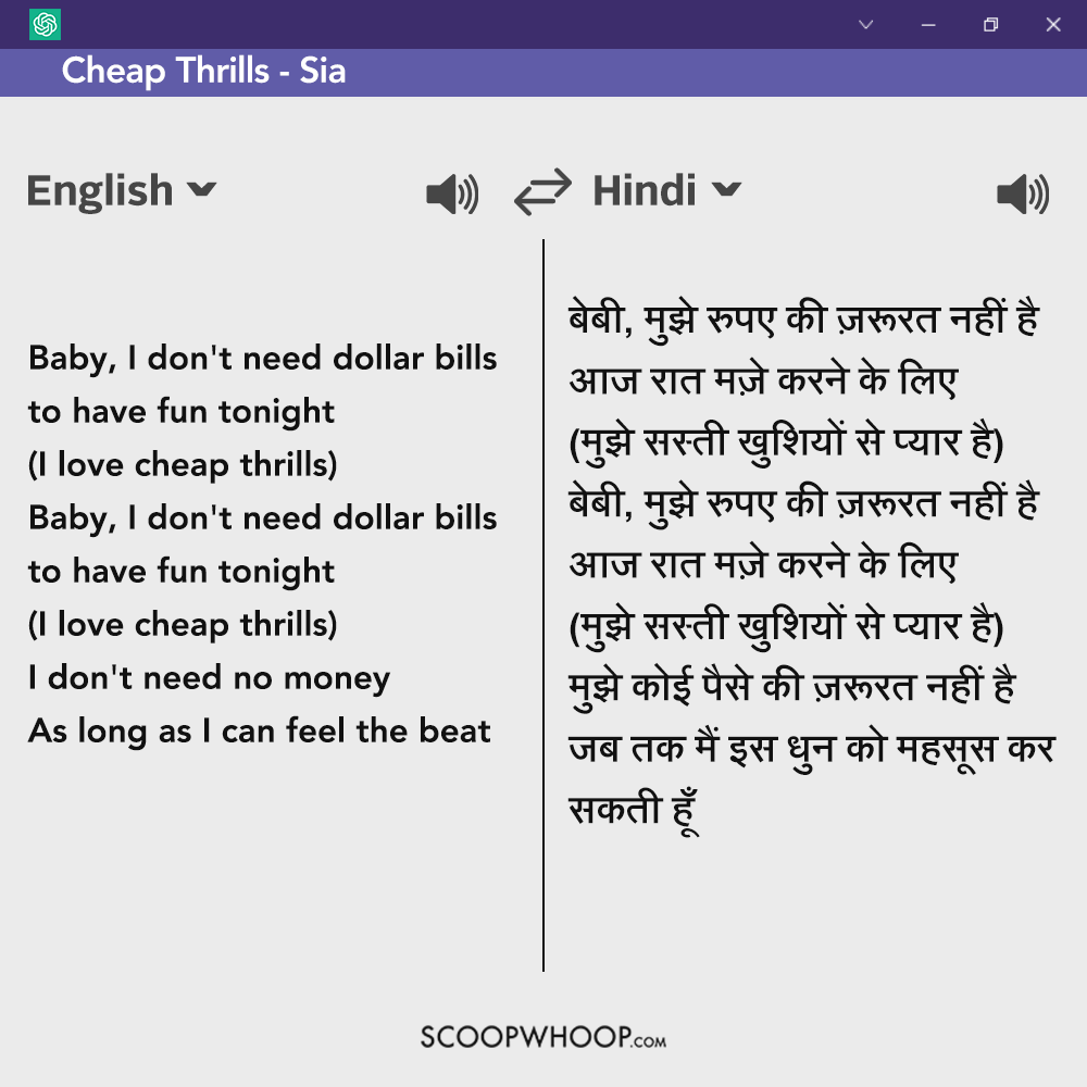We Got ChatGPT To Translate Popular English Songs Into Hindi Only To Scoopwhoop Hindi Songs In English Let’s see how many you can guess. Get ready to test your bollywood song knowledge like never. Each of these iconic bollywood songs has been run through google translate and translated into english. Bollywood hits are bae after all. We decided to bring together all our favourite bollywood songs and translate them. From pasoori to tip tip, 9 times bollywood. Scoopwhoop Hindi Songs In English.