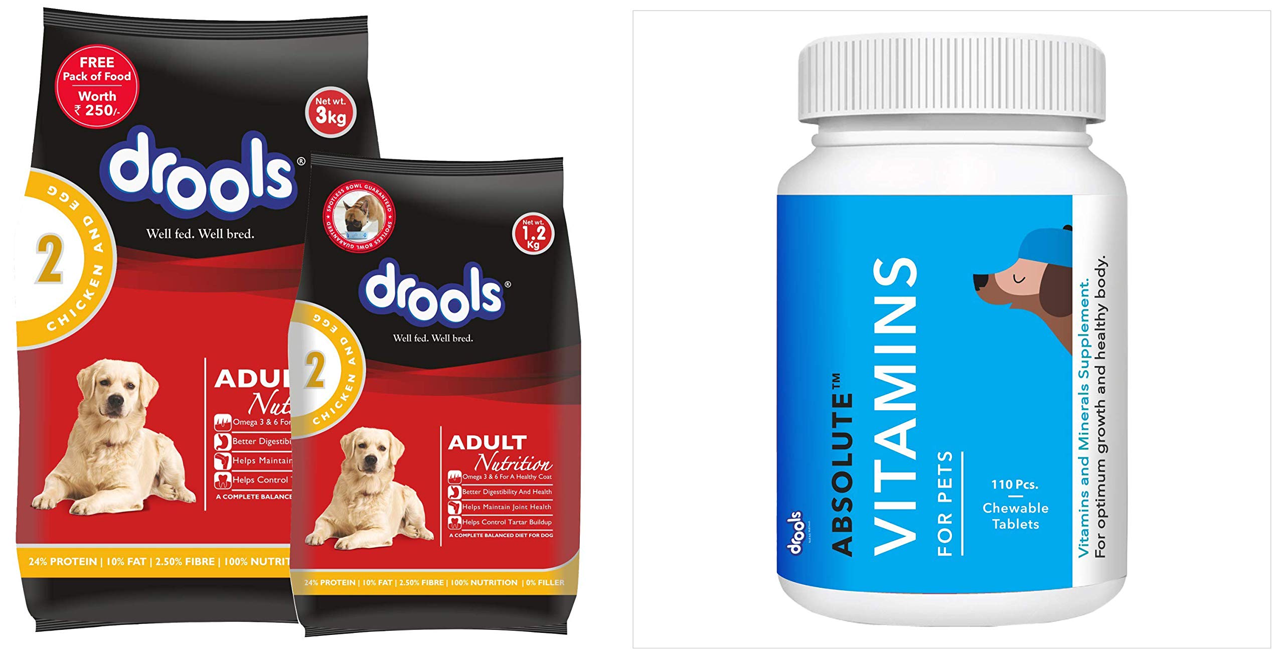 Buy Drools Chicken and Egg Adult Dog Food, 3 kg with Free 1.2 kg