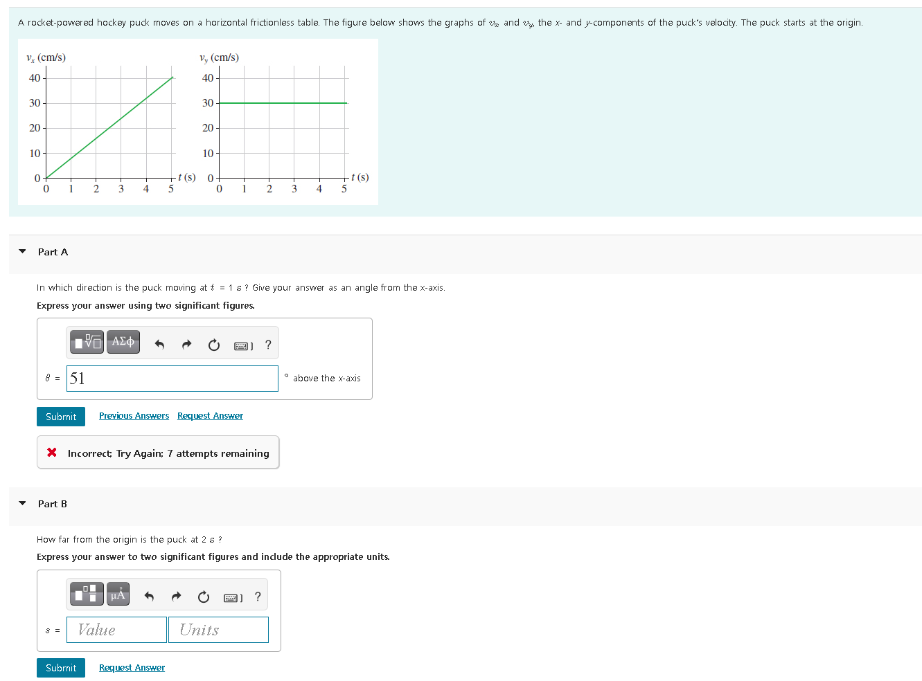 Solved A rocketpowered hockey puck moves on a horizontal