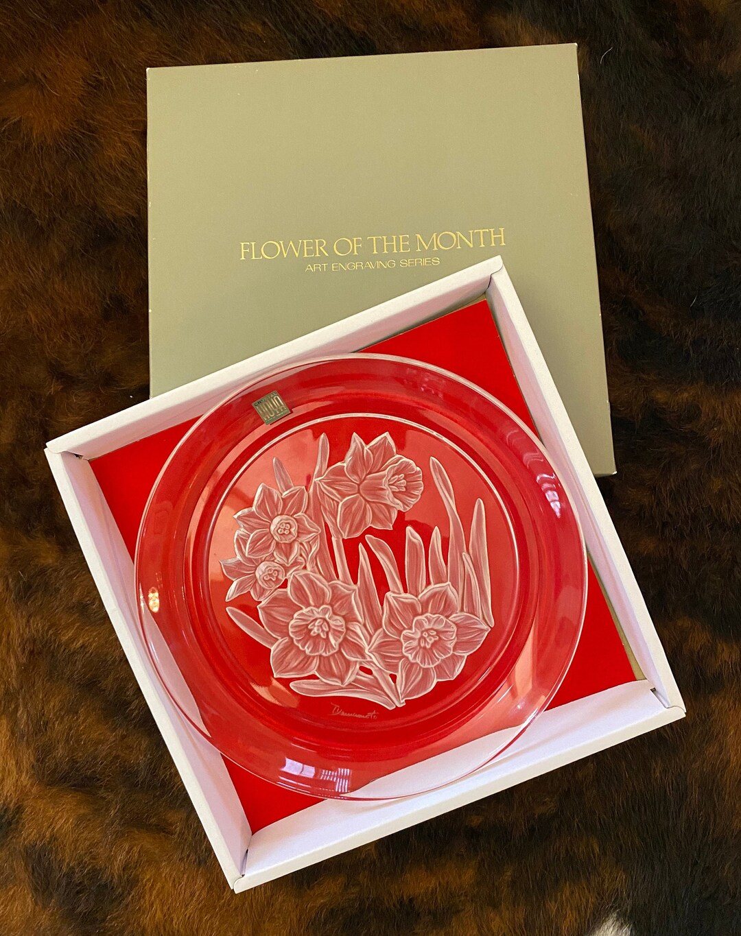 Vintage Hoya Crystal Japan Flower of the Month Plate Daffodils Etsy