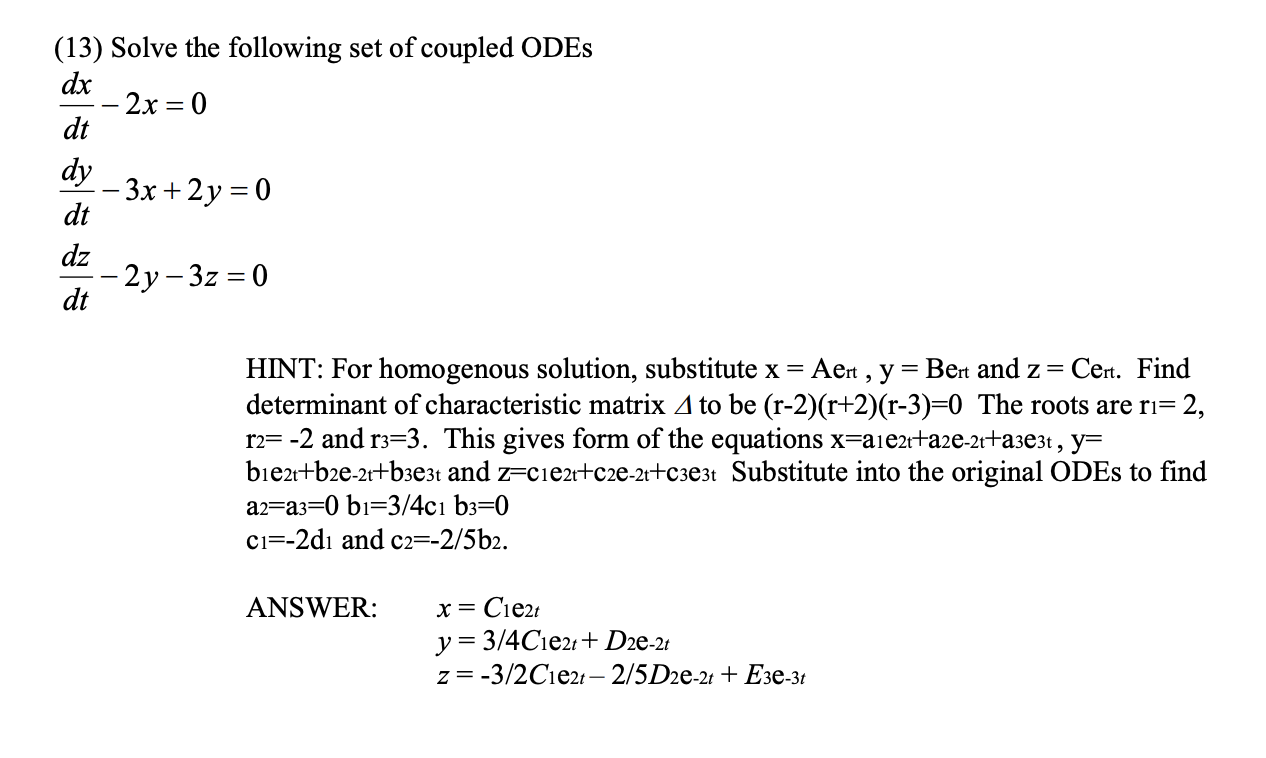 Solved (13) Solve the following set of coupled ODEs